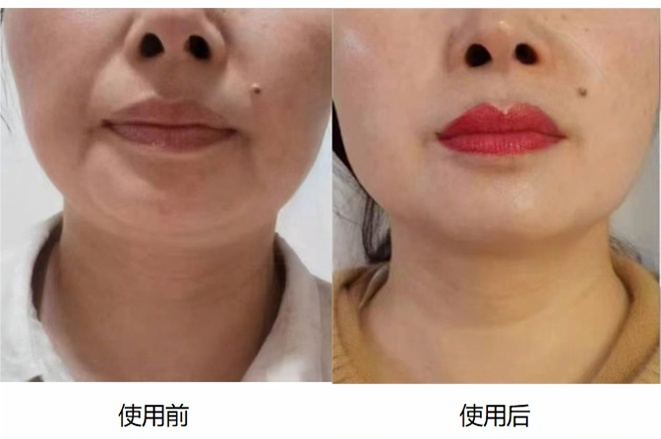 使用后狀態(tài):15天使用了產(chǎn)品2瓶,法令紋淡化,下頜線(xiàn)清晰、皮膚變緊致,更顯年輕。