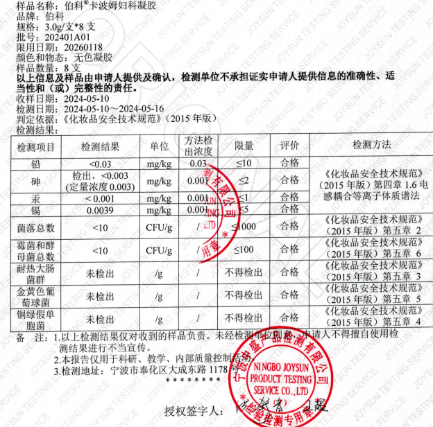 伯科®卡波姆婦科凝膠是國家藥品監(jiān)督管理局認(rèn)證的二類醫(yī)療器械(注冊證編號:贛械注準(zhǔn) 2023218021)。 產(chǎn)品不含任何抗生素、激素或其他藥理成分,核心成分僅為美國進(jìn)口卡波姆980PE、甘油、純化水等,性質(zhì)溫和,安全零刺激。