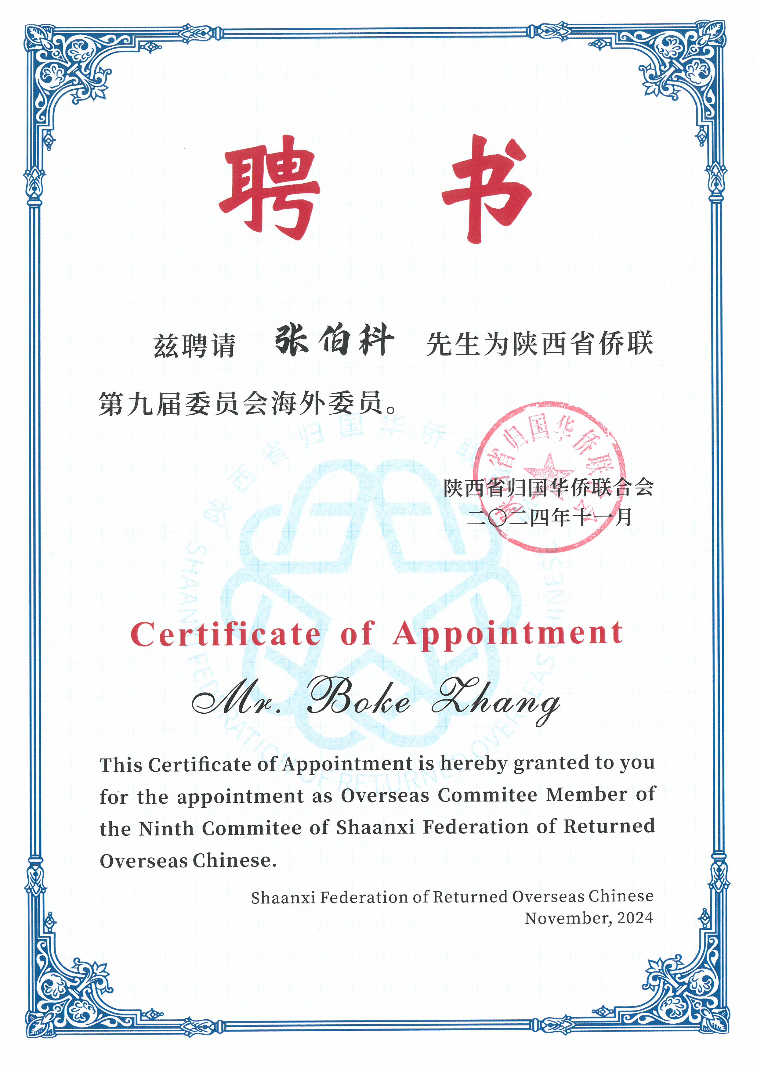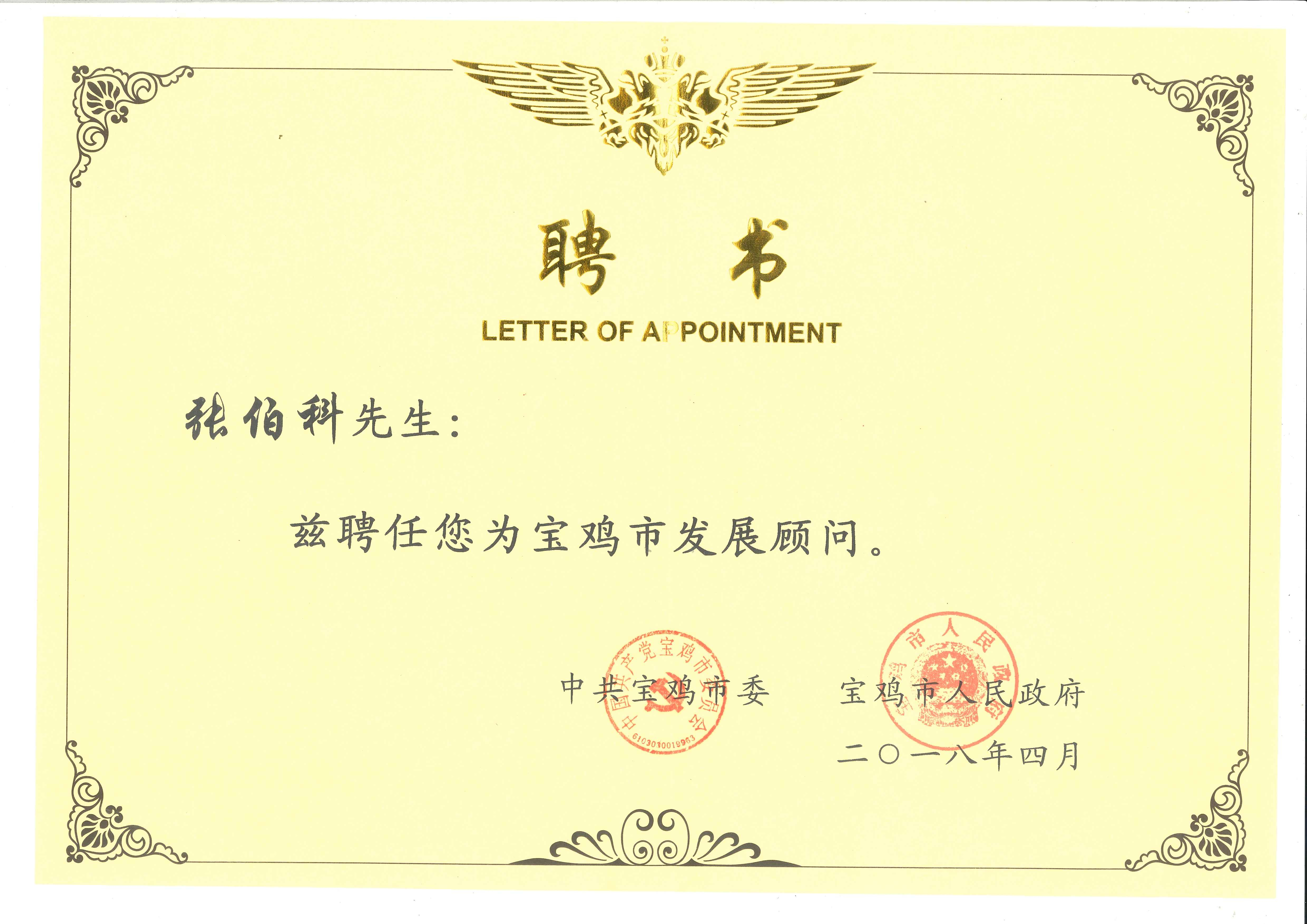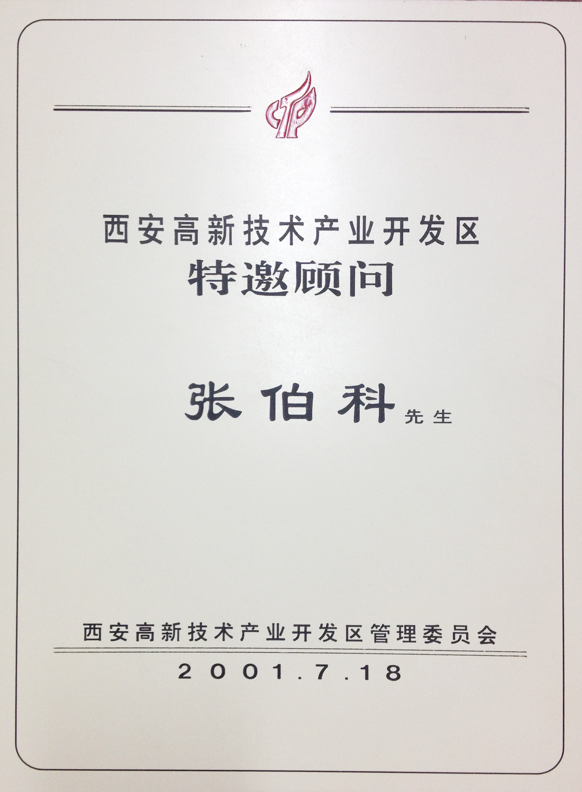 國家級西安高新技術(shù)產(chǎn)業(yè)開發(fā)區(qū)特聘海外顧問